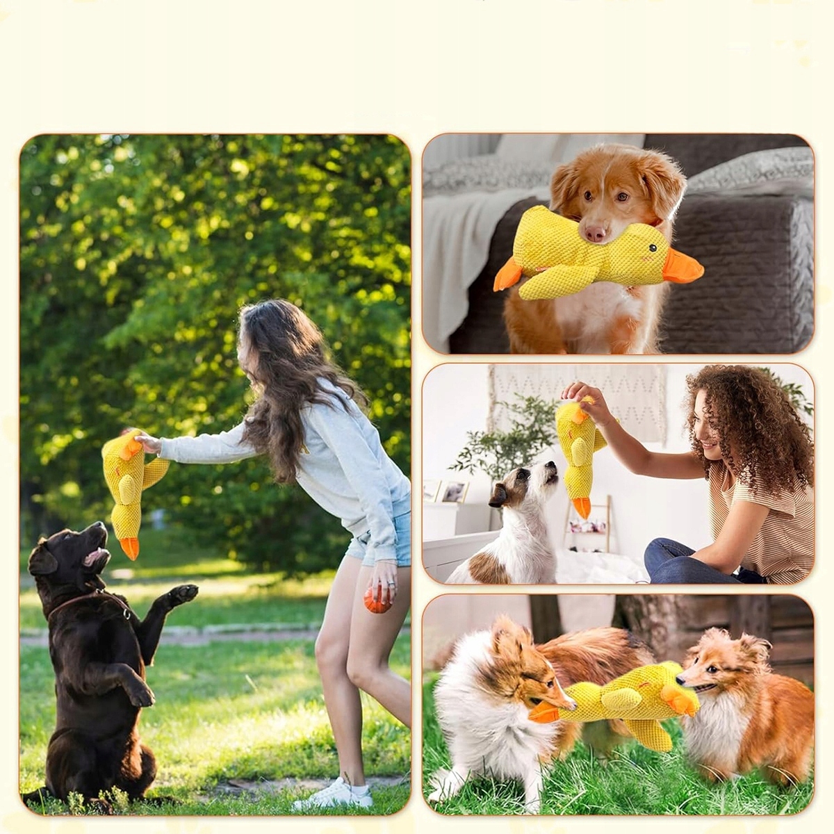 - Głęboki relaks dla Twojego psa: Uspokajające kwakanie antystresowej kaczki oddziałuje na naturalne instynkty Twojego psa, naśladując uczucie towarzyszące polowaniu. Twój pies nie tylko będzie miał zajęcie na wiele godzin, ale taka aktywność także pozwoli mu się zrelaksować. Pies-kaczka antystresowiec pomaga złagodzić lęk separacyjny i zmniejszyć stres.